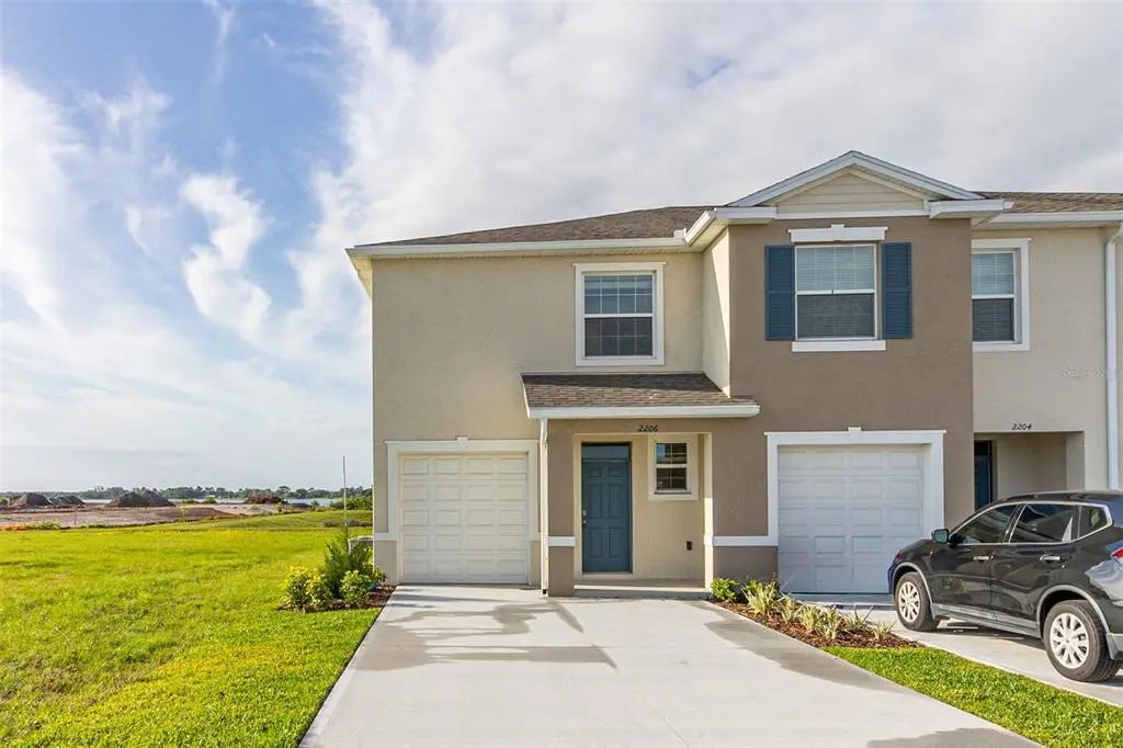 Lakeview concrete block construction townhome, spacious corner unit features 3 bedrooms and 2.5 baths. As you enter the foyer you are welcomed with a powder room, and a spacious family room overlooking a covered rear lanai. Entertaining is a breeze, as this popular townhome features a spacious kitchen island, breakfast nook/dining area and a spacious walk-in pantry. This Express Series community has upgraded sleek stainless-steel appliances, making cooking a breeze. As you head up to the second floor you are greeted with 3 bedrooms and 2 bathrooms. Main Bedroom has two walk-in closets and main bathroom includes an ensuite with double bowl vanity and spacious shower. Like all homes in Thompson Grove, the Vale includes a Home is Connected smart home technology package which allows you to control your home with your smart device while near or away. Your new townhome will always have fantastic curb appeal while allowing you time to do the activities your family.